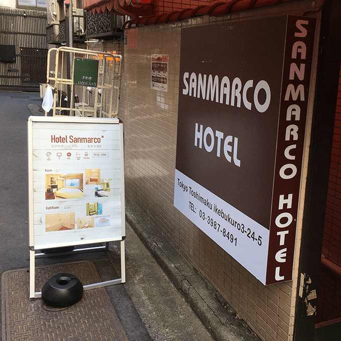 池袋ホテルの電気看板と内観イメージ看板のデザイン、注文と設置まで担当しました。
