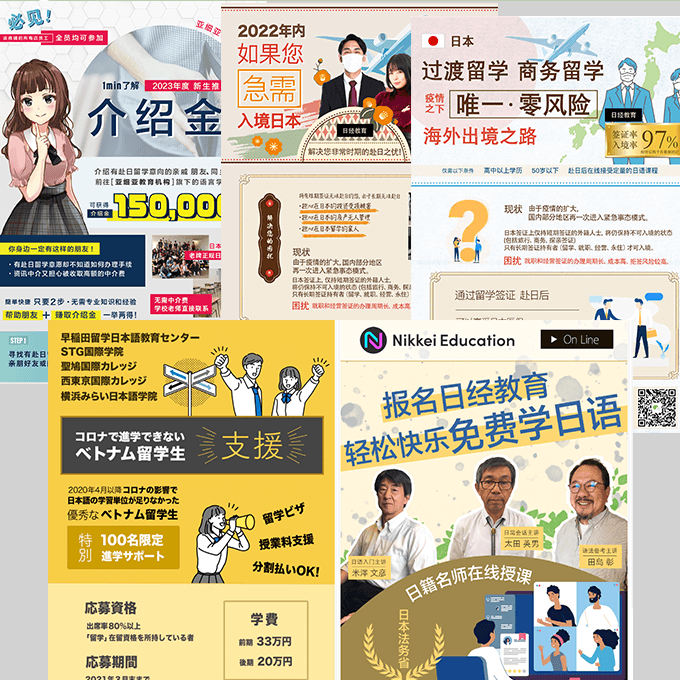 留学プランや紹介制度を説明するための印刷物やSNS宣伝画像を作成しました。
